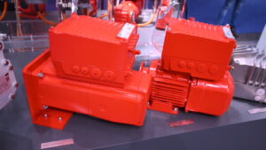 Tobias Nittel, head of product solutions center for decentralized technology at Sew-Eurodrive, said, “The new MC/1-Mot (or Motor Integrated Electronics) that we’re showing here can operate an asynchronous motor in the efficiency class 13 and synchronous motors in the efficiency class IE5, which is the highest available today. This solution solves the conveying application in the most efficient way.”