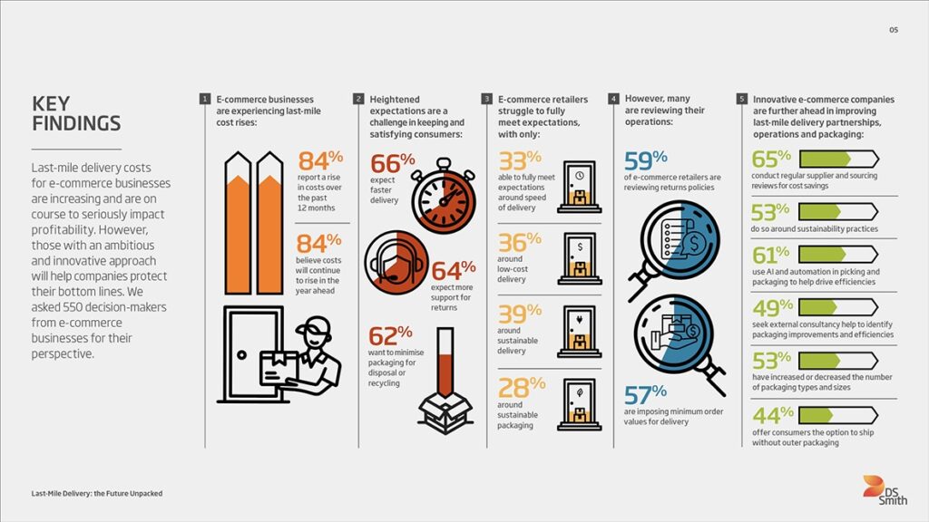 “The message from our survey is clear – innovative companies that are more open to new ideas, and which regularly review their set-up around last-mile delivery and explore new ideas with packaging suppliers, are better able to cope with the significant challenges that the e-commerce sector faces and in a better position to meet the demands of tomorrow.
